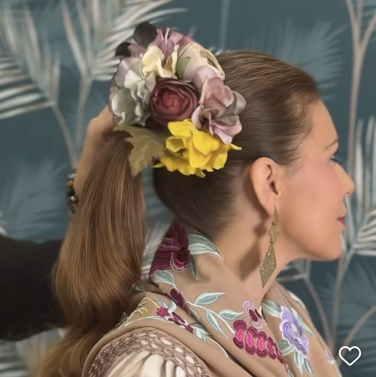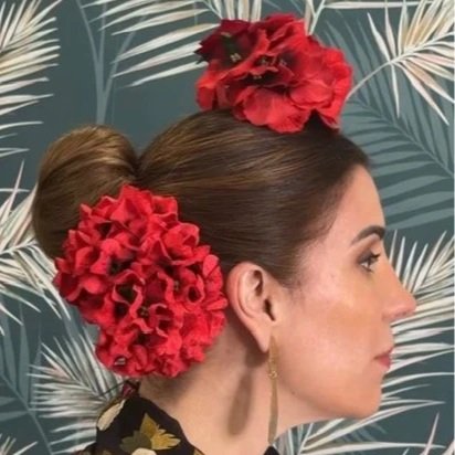 Items you will need for a bun: hair tie, comb, gel, hairspray, hairnet, bobby pins, COLORFUL FLOWERS AND FLAMENCO PINS, PEINECILLOS if you have them.